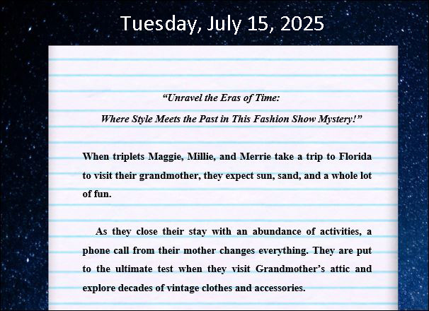 We’re moving on to day two of my book launch for “Magical Fashion Show Contest.”